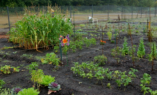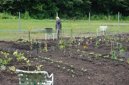 July 23, 2009 Fencing completed, gardens are fully enclosed, 10 people gardening in plots